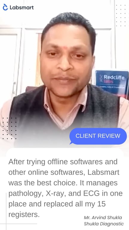 Labsmart is a pathology lab software used in over 1500 pathology labs across India. We offer an entire lab management system with which a lab owner can easily manage all aspects of a lab - Patient registration, billing, Lab reporting, referral business, expense management, employee management etc. You can take a 5 day free trial of the platform to see if it fits your need.